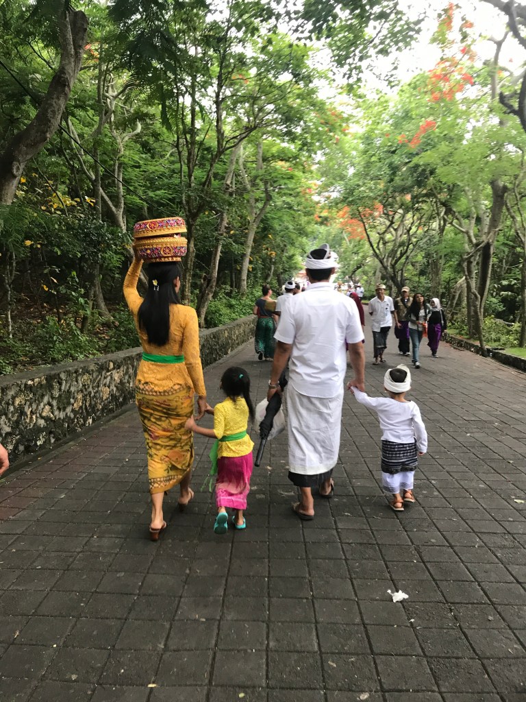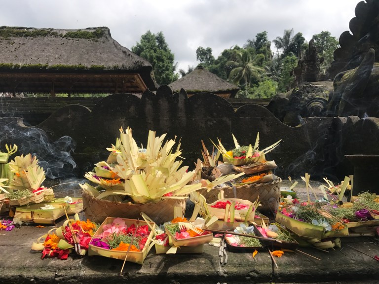 We spent the first days in Ubud, the capital of rice fields and yoga pants. Although it rained quite a bit on us we enjoyed strolling around visiting temples, rice fields and embracing the vibe in this town in the middle of the island. The special hindu culture of this place is quite singular, with incense, flowers and food offerings all over the streets. Each house has its very own tiny temple and local devotees dress up for evening ceremonies carrying trays of offerings.